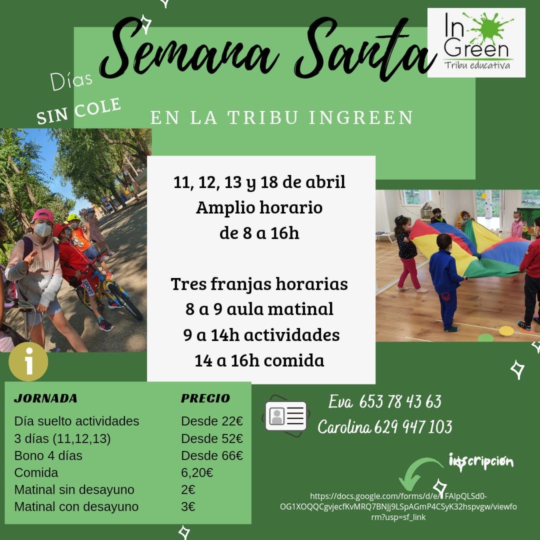 No os perdáis las actividades de LA TRIBU EDUCATIVA IN GREEN. Un proyecto diseñado para la oferta de ocio educativo en el ámbito familiar infantil y juvenil para garantizar el bienestar de todas las familias que formáis parte de nuestros proyectos, con alternativas saludables para todos y favorecer ese bienestar de nuestros y vuestros hijos.