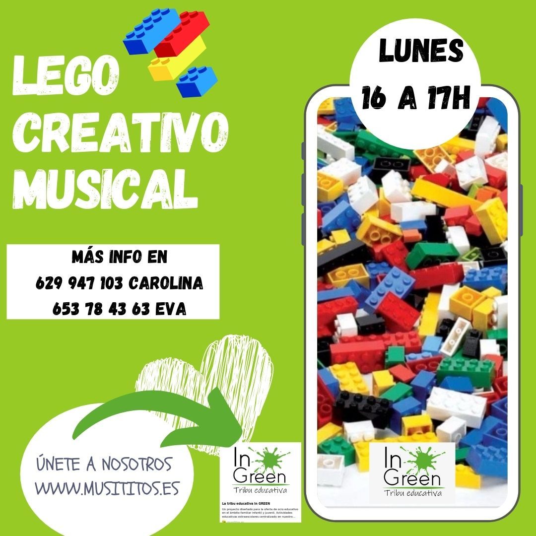 LEGO MUSICAL CREATIVO aula de creación a través de lego y basado en la música, bandas sonoras y otras actividades de sentido musical. Los lunes de 16 a 17h.
