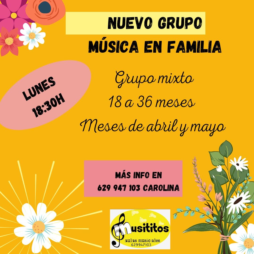 MÚSICA EN FAMILIA ( 18 A 36 MESES) Nuevo grupo mixto los lunes 18:30h.