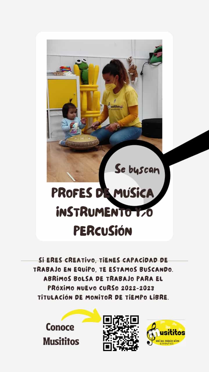 Si te gusta la música, tienes formación musical, formación en cualquiera de las posibilidades que ofrece la infancia, eres creativo/creativa , alegre y risueño/a, crees en tí y en el poder de la música en el desarrollo personal de los más pequeños.... te estamos buscando!!! 👍